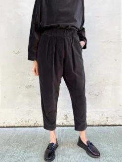 The full-length Koa Pant is made from smooth, high-quality vegan leather with a subtle sheen. Its timeless silhouette features a wide, straight leg, slanted pockets, and an elasticated waistband for a pull-on construction.