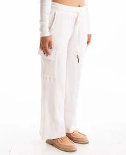 The Koa Pant is cut for a high-rise fit with a full-length inseam and wide, straight leg. Take your true size. Model is wearing a size XS.