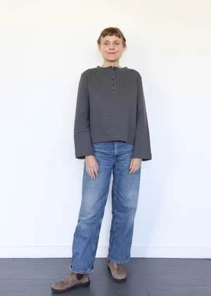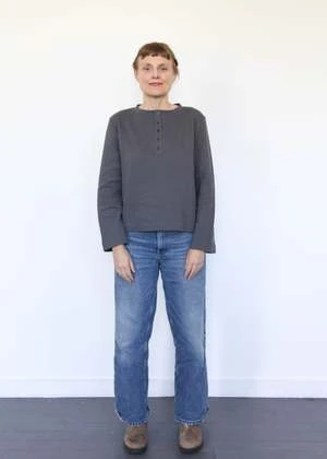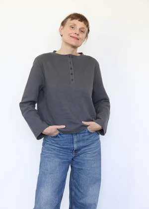The Hayden top is a classic Henley style crew neck with a full length sleeve and half placket button detail.