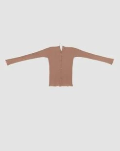 – Rib trims at neck, cuffs and bottom hem to control volume