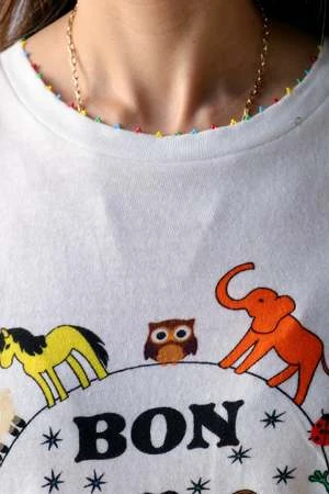 This cropped tee-shirt is crafted from 100% organic cotton and features a unique design printed on the front.