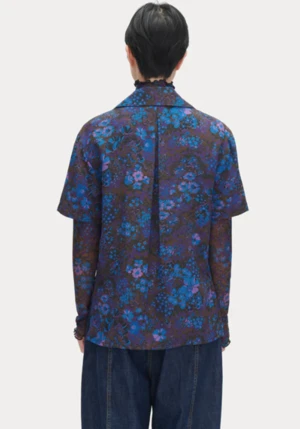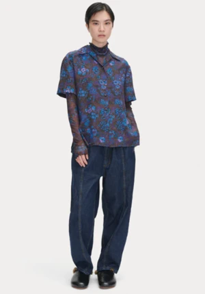 Boxy, short sleeve pajama shirt in a new 70s-inspired graphic floral print silk. We love the Ira paired back to the Ayla jean from Citizens of Humanity or the new Rachel Comey Arley pant in terracotta.
