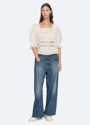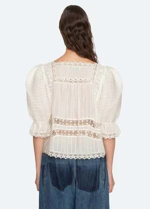 The Haven cotton dobby blouse from Sea New York features subtle puff sleeves, pretty lace insets and trim detailing. Style yours with jeans or dress it up with a skirt or tailored pants.